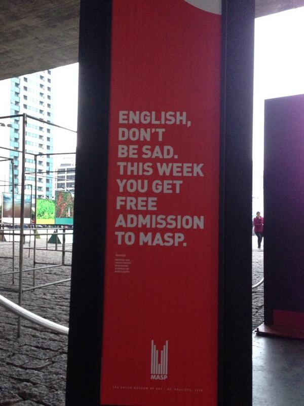 وفي واقعة طريفة من البرازيل لمواساة الجمهور الإنجليزي الغاضب بسبب فريقه، قام متحف ساو باولو للفنون بوضع لافتة على مدخله كتب عليها: "إلى الإنجليز، عليكم ألا تحزنوا، فهذا الأسبوع سيمكنكم زيارة المتحف مجاناً".